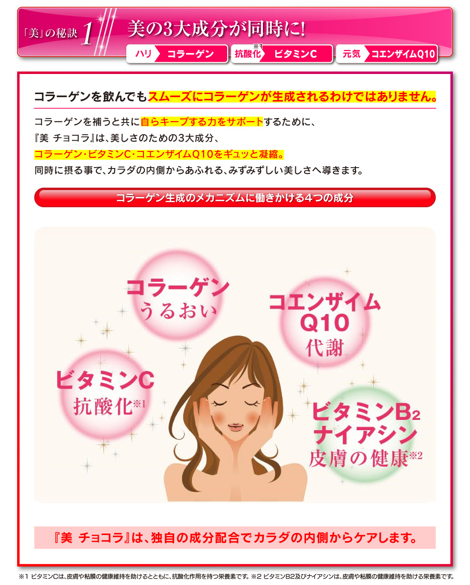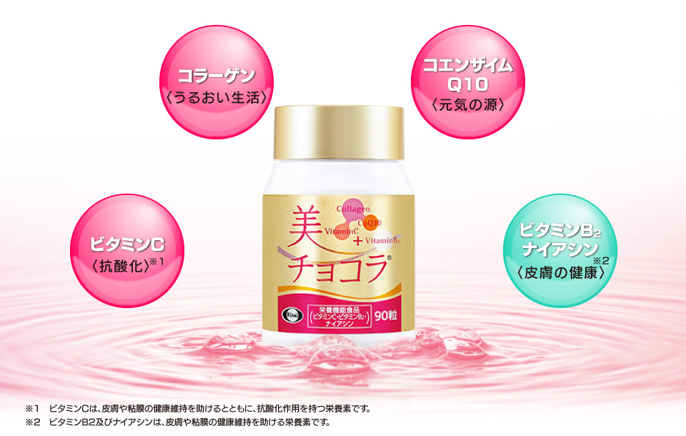 ビタミンB2…10.0mg(714%)※注/ナイアシン…20mg(154%)※注 コラーゲンペプチド…150mg/コエンザイムQ10…30mg
